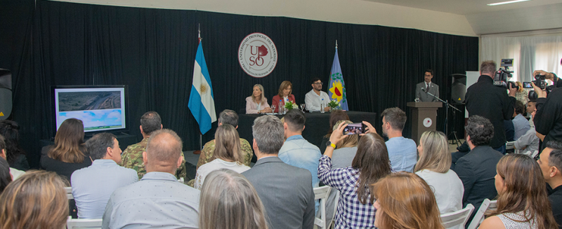 Luego del mensaje del Intendente, tomó la palabra la Presidenta de la Asamblea Universitaria de la UPSO, Lic. Camila Iparraguirre, quien procedió a la lectura del acta correspondiente para formalizar la puesta en funciones de las nuevas autoridades. En ese contexto, las flamantes autoridades recibieron presentes y distintas salutaciones que destacaron el significado institucional y académico de esta nueva etapa para la universidad.