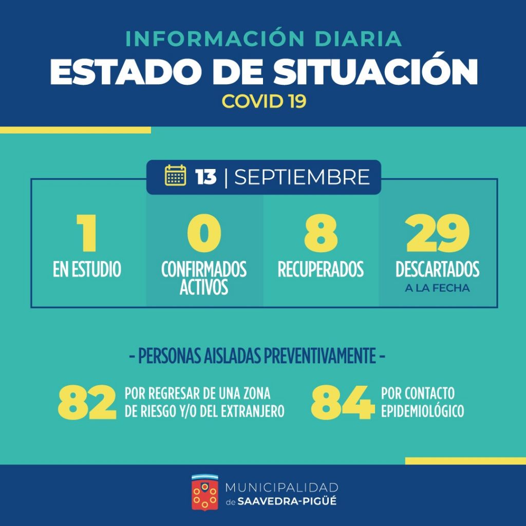 Destacada del Día 13 de Septiembre de 2020 UN NUEVO CASO SOSPECHOSO Y 84 PERSONAS AISLADAS Hace instantes se dio a conocer el estado de situación del Covid-19 y aparació un nuevo caso sospechoso y a raíz de este se aislaron a 84 personas por contacto epidemiológico.