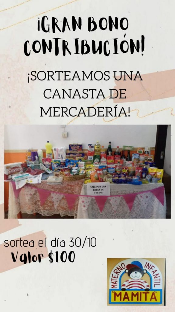 Sociales 6 de Octubre de 2020 RIFA DEL MATERNO El Materno Infantil Mamita, tiene a la venta un bono contribución de una gran canasta de mercaderías. Sortea el 30 de octubre. Valor $100.Los interesados pueden adquirirlo mañana miércoles de 10 a 12 hs. en la sede de Colón 55.