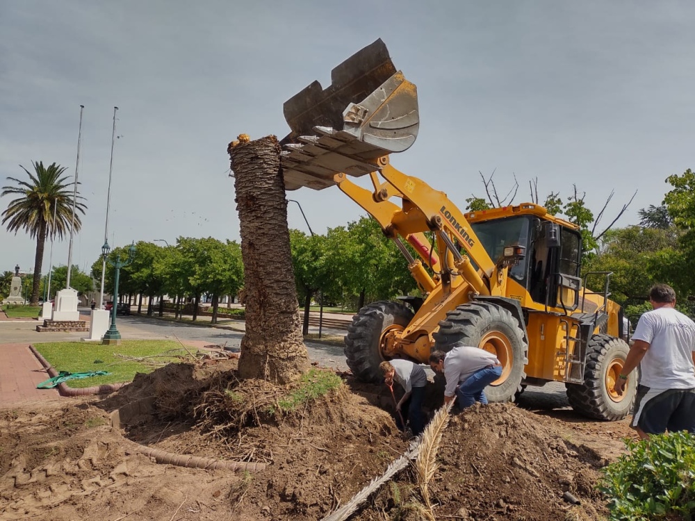 En la mañana de hoy dos palas del municipio finalizaron el trabajo que se venía haciendo hace varios días para extraer una palmera ubicada en el boulevard de Av. Casey casi esquina Lucio V. López.