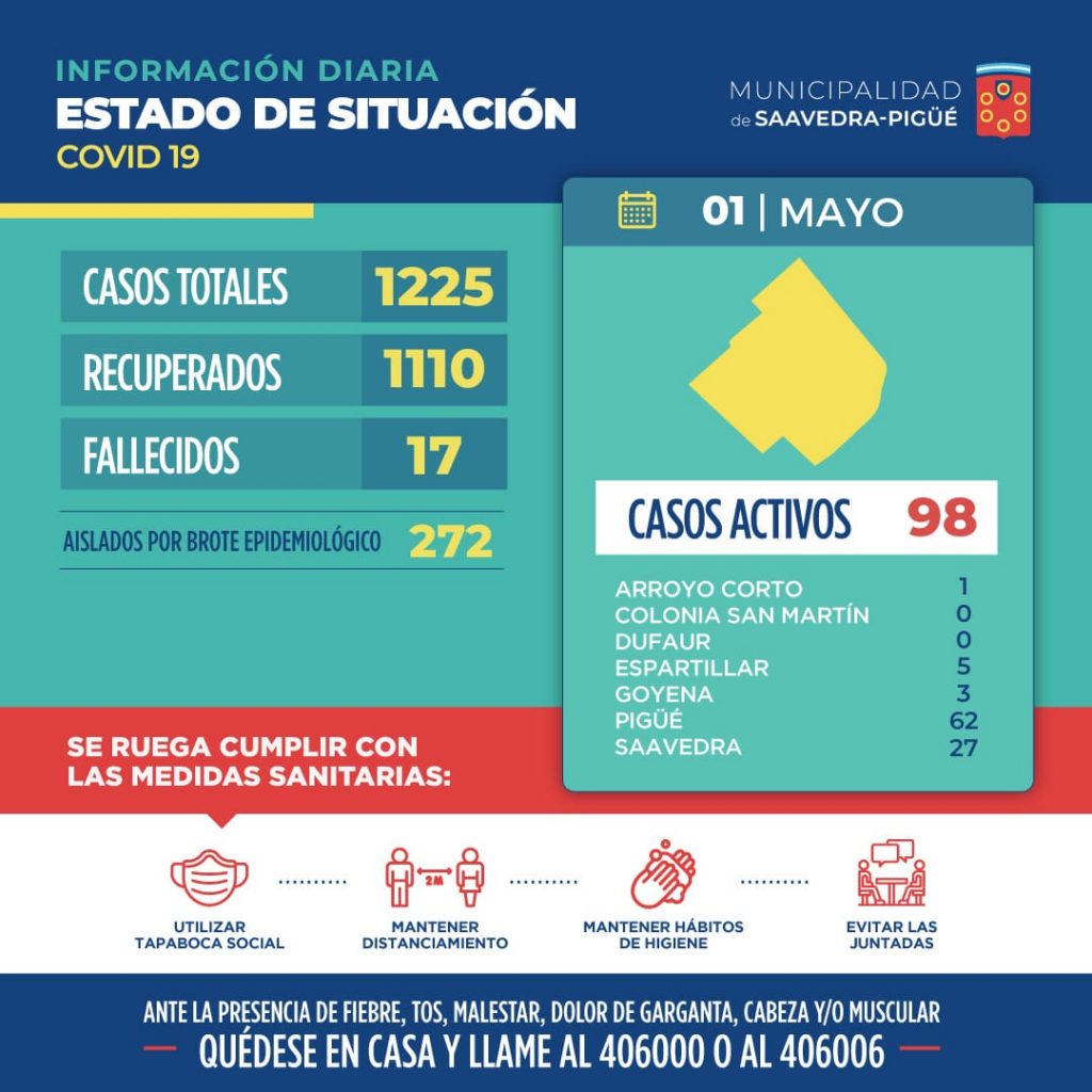 Salud 1 de Mayo de 2021 11 NUEVOS CASOS POSITIVOS Y 20 RECUPERADOS Así lo indica el informe de la Secretaria de Salud en el día de hoy donde se registraron 11 nuevos casos de covid-19 y 20 recuperados. Los casos activos son 98 y las personas asiladas 272.