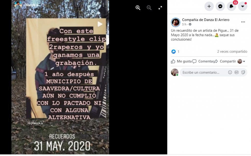 Entre algunas publicaciones que se hicieron en las redes sociales, los trabajadores de la cultura dicen ser “ignorados” “subestimados” y expresan que “algunos hacen la plancha” mientras los artistas quieren trabajar.
