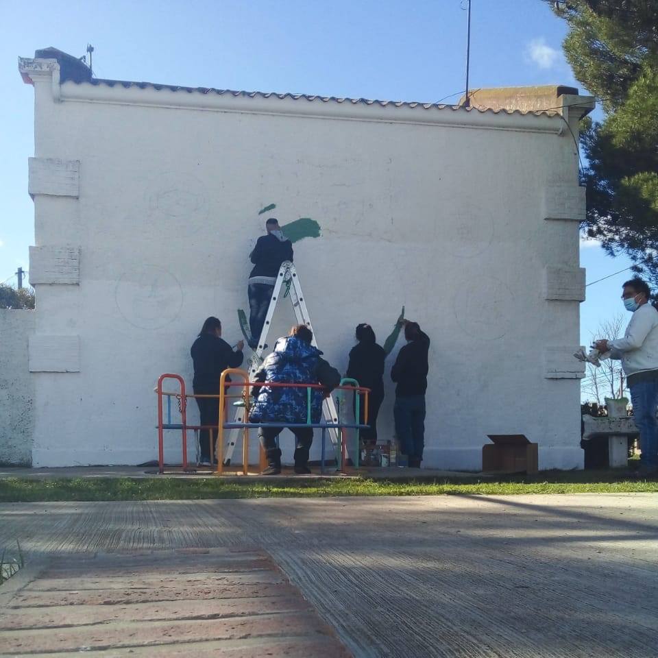 Los alumnos de la asistencia técnica municipal "muralismo" a cargo del Profesor Pablo Vacarezza, realizaron una intervención artística en una de las paredes de la casa donde funciona el CPA local.