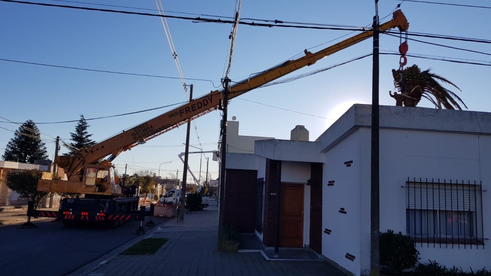 Sacaron una palmera gigante de un domicilio en calle Pellegrini