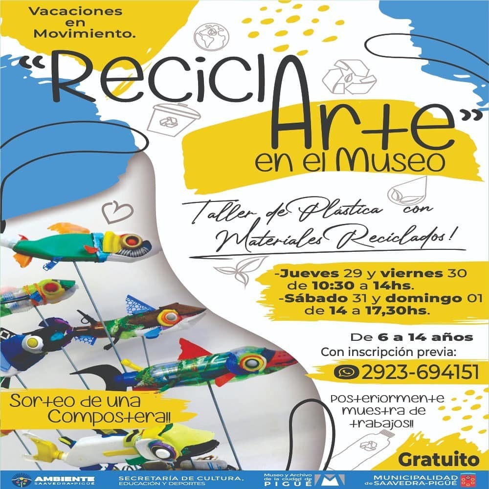 El museo y archivo de Pigüé junto al área de ambiente municipal invitan a los chicos entre 6 y 14 años a participar de un taller de expresión artística con materiales reciclados a realizarse en el museo. Luego las obras serán parte de una muestra temporaria.