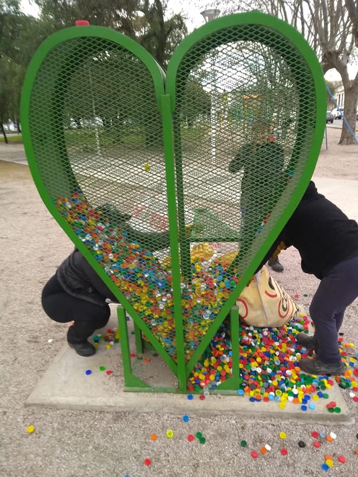Tapitas de los corazones solidarios que se entregan a la Fundación bahiense Ayuda-Le.