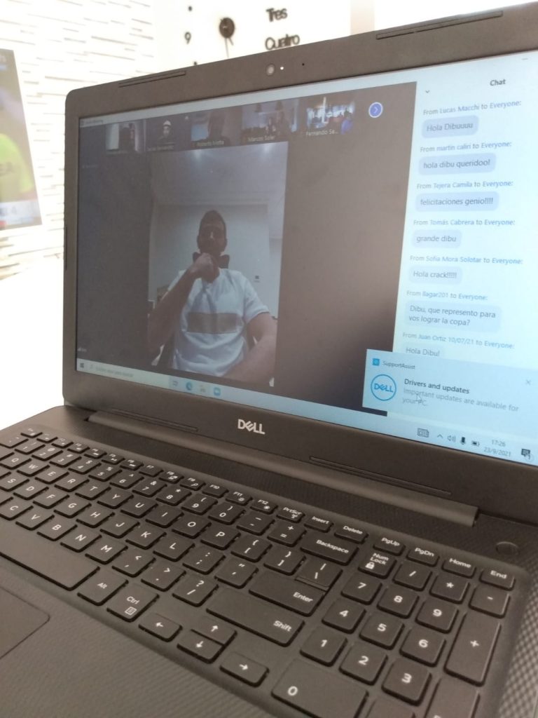 Emanuel Moyano se dio el gusto de contactarse y hacerle preguntas vía web al arquero Emiliano “Dibu” Martínez gracias a un concurso de la marca Adidas. El pigüense fue uno de los 30 afortunados que pudo tener este privilegio el jueves por la tarde.
