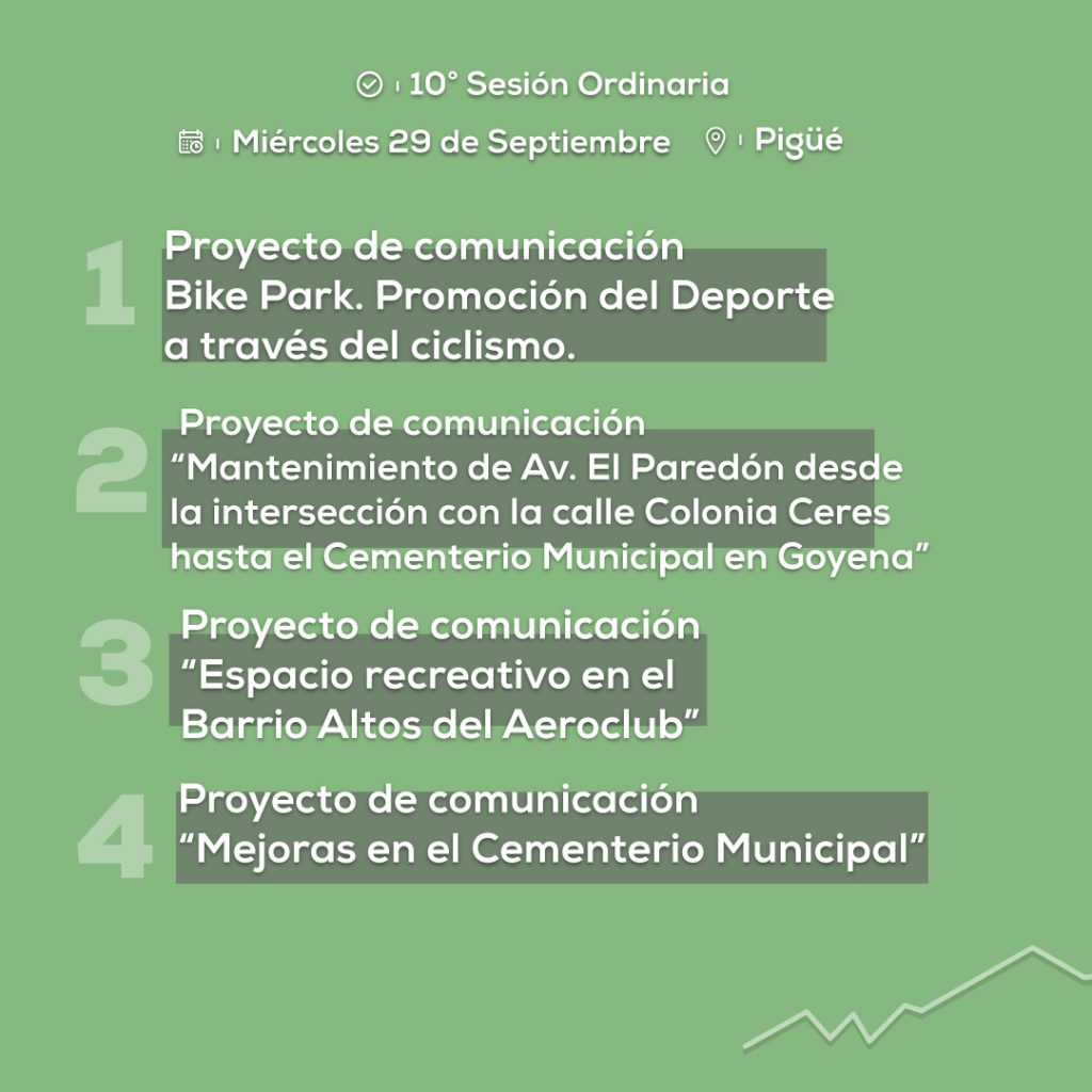 En el día de hoy, miércoles 29 de Septiembre en la 10° sesión ordinaria del Honorable Concejo Deliberante, el concejal Matias Nebot, del bloque de Todos Por Saavedra, presentará 4 proyectos: