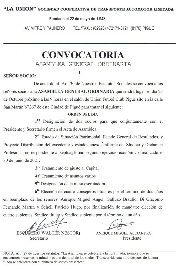 CONVOCATORIA A ASAMBLEA GENERAL ORDINARIA
