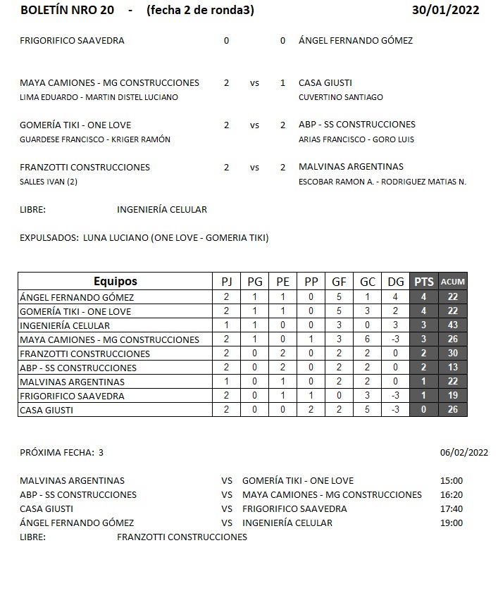 Futbol Comercial 30 de Enero de 2022 Reinició el Guillermo Palma Tras dos fines de semana sin actividad, en el que pasó y nuevamente en el parque municipal se reinició la actividad para el torneo comercial Guillermo Palma, con la disputa de la 2º fecha de la tercera rueda.