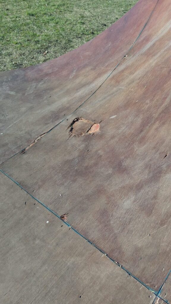 “Hubo accidentes y niños lastimados porque se desprenden astillas de tamaño considerable” argumentó el concejal justicialista Nicolás Catalano quien solicitó la clausura preventiva del lugar hasta que la seguridad pueda ser garantizada.