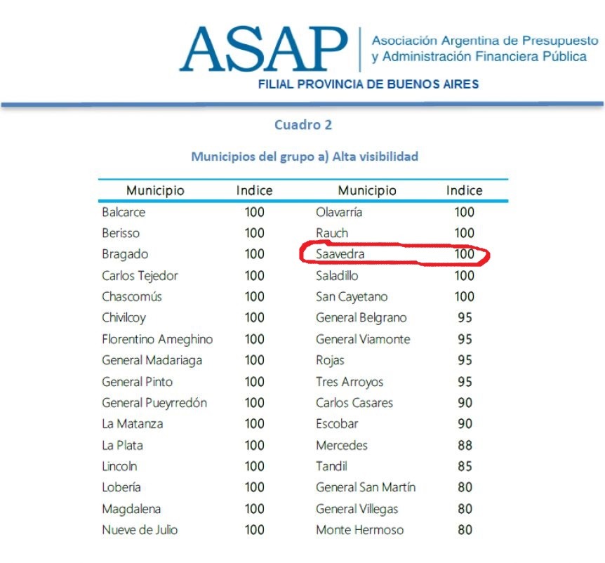 Municipio de Saavedra: entre los 20 más transparentes de la provincia