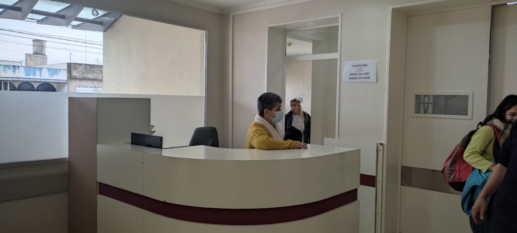 Diagnóstico por imágenes: solicitud de turnos y retiro de informes ingreso principal por calle Liniers. Escritorio a la izquierda.