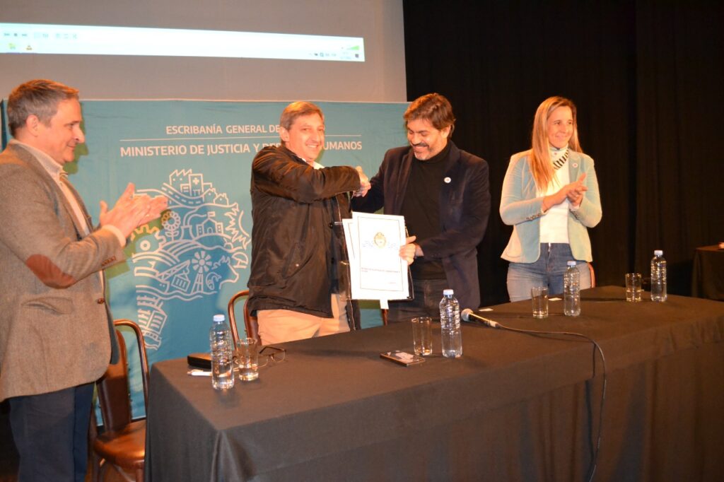 Luego de ver y escuchar un mensaje grabado del gobernador Axel Kicillof, el intendente Notararigo dio la bienvenida a los visitantes y señaló “es un honor y un orgullo poder hacer esta actividad hoy que es de tanto valor para estar tranquilos en la familia, para acceder a muchos beneficios, y la verdad es que esto nos pone muy contentos. No hace mucho tiempo el equipo de Escribanía General de Gobierno vino a Pigüé, en diciembre, para un proceso de toma de firmas que es muy importante”, y agradeció a distintos funcionarios del gobierno bonaerense y a las dependencias municipales que participaron.