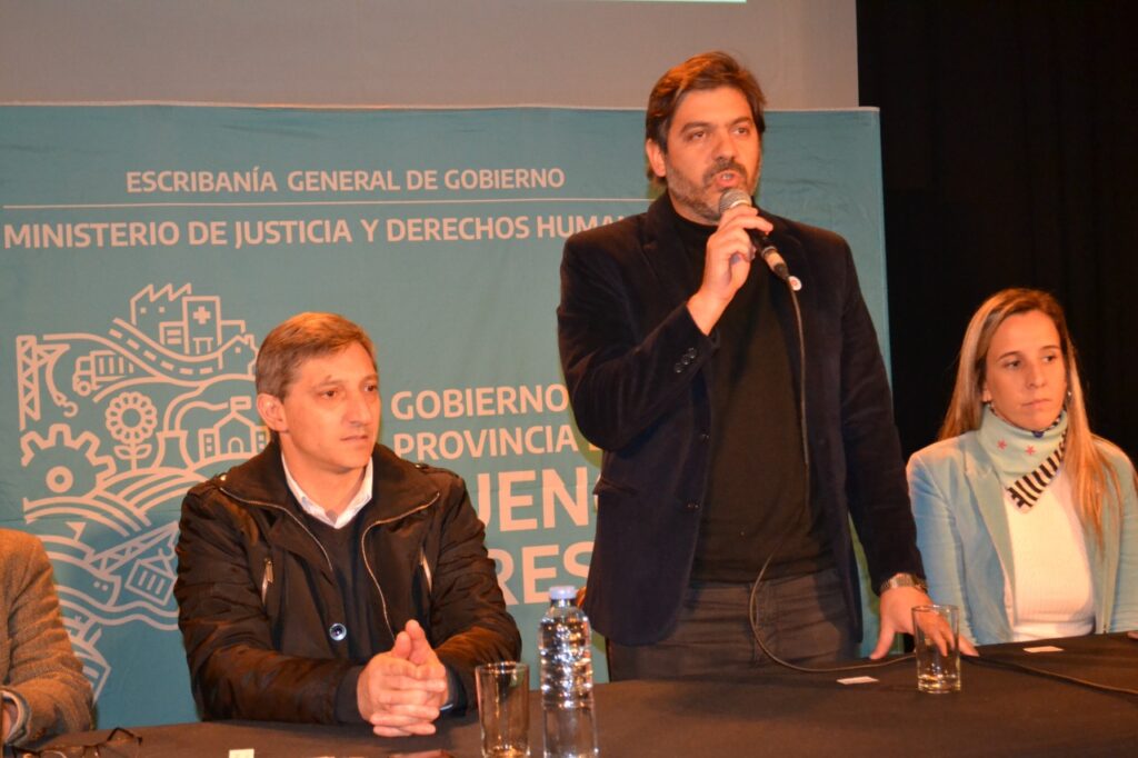 “En muchos casos lo que termina pasando es que pasan los años y esa casa que se construyó con esfuerzo, que se compró con mucho esfuerzo, que se recibió muchas veces a través de un programa de viviendas del Estado, pasan los años y no se recibe la escritura… seguramente hay familias que hace 10, 15, 20, 40, 50 años como hemos visto que están esperando su escritura y la definición política que tuvo el gobernador Kicillof al principio de su gestión, recuerdo la primera reunión de gabinete en donde a cada uno de los ministros nos hizo repasar la situación y cuales eran las cuentas pendientes en materia de gestión, el ministro Alak, ministros de Justicia y Derechos Humanos lo advirtió de que había un déficit importante, muy importante en la provincia de Buenos Aires para la entrega de escrituras. Detectamos 800 mil familias que tienen su vivienda, que están haciendo posesión de su vivienda pero que no tienen la escritura. Inmediatamente el gobernador le pidió que empecemos a saldar ese déficit a través de la Escribanía General de Gobierno”, aseveró y que habían tratado de hacerlo lo más rápidamente posible a pesar de la pandemia que fue una complicación extra.