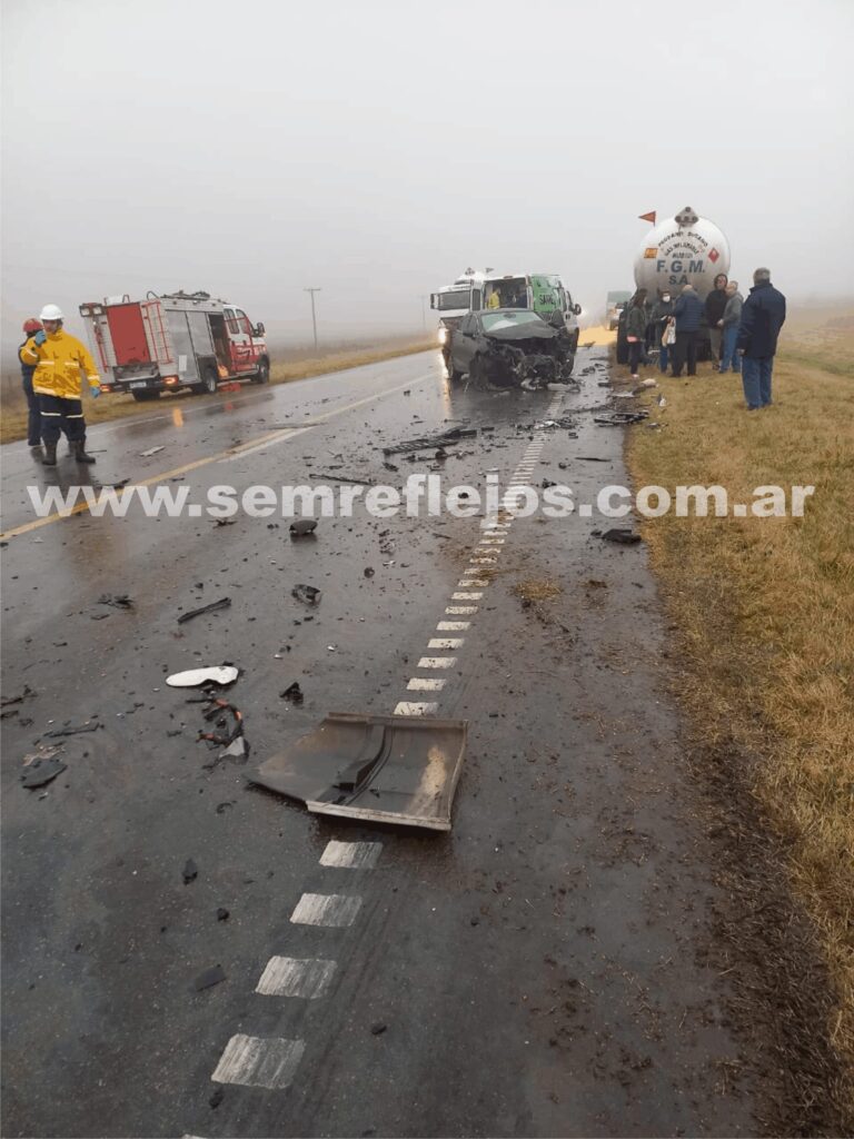 El choque ocurrió en el tramo ubicado entre Dufaur y Saavedra. Por razones que se investigan un Chevrolet Cruze con dos ocupantes, tres camiones con acoplado y un camión cisterna de gas licuado se vieron involucrados en el hecho.