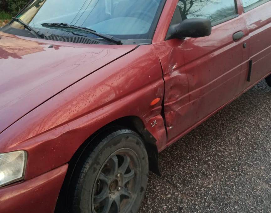 Hace instantes se produjo una colisión entres dos autos en la intersección de las avenidas Carlos Gardel y Cabanettes. El Escord circulaba por Carlos Gardel y fue impacatado por el VW Gol que venía por Cabanettes. Por lo que pudimos averiguar solo hubo daños materiales.