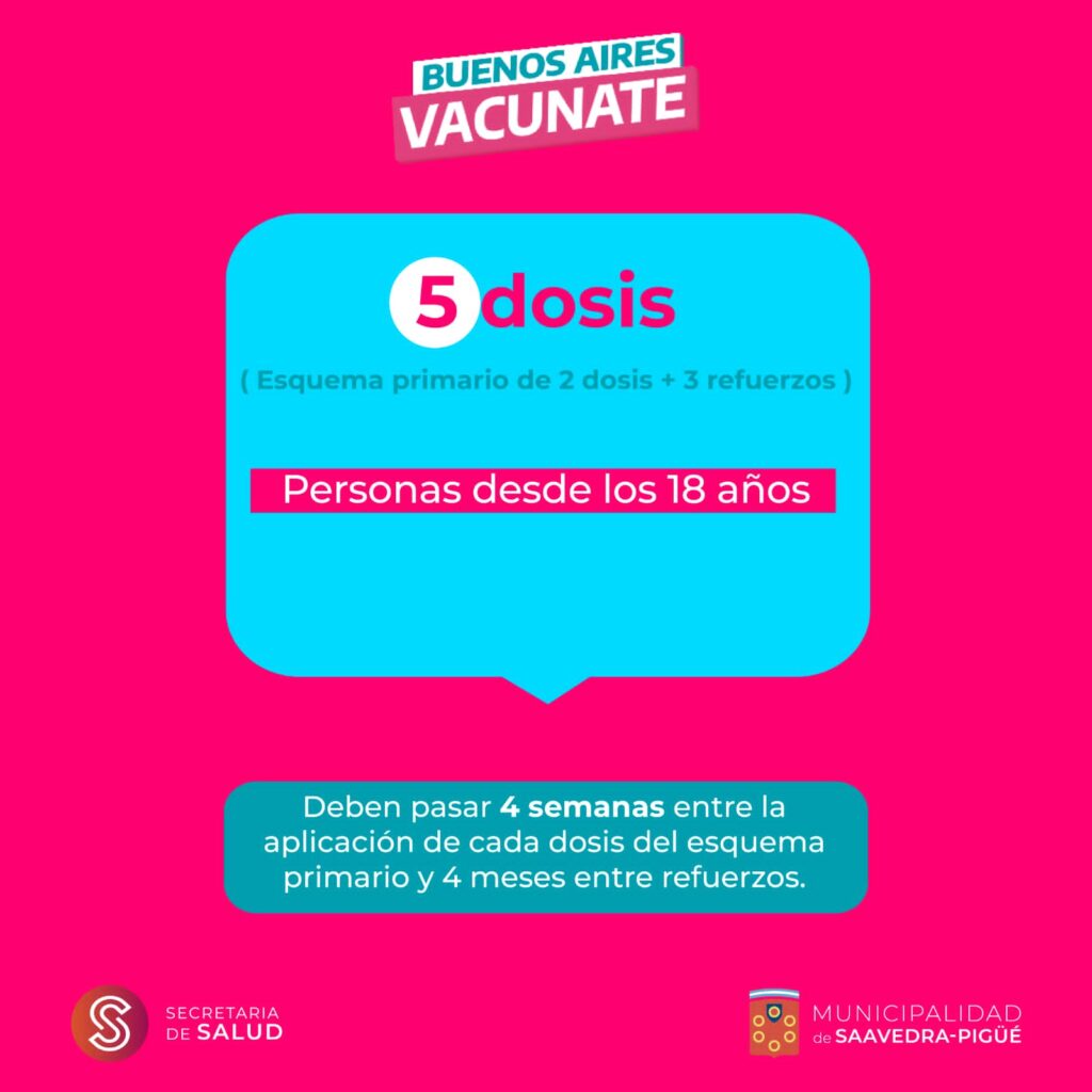 Destacada del Día 23 de Enero de 2023 Vacunan contra Covid en todo el distrito Conocé días, horarios y lugares de vacunación. Se aplican refuerzos desde tercera a sexta dosis. En las localidades del distrito se vacunará a partir de mañana en horario de 14.30 hs a 17 hs. según el siguiente cronograma: