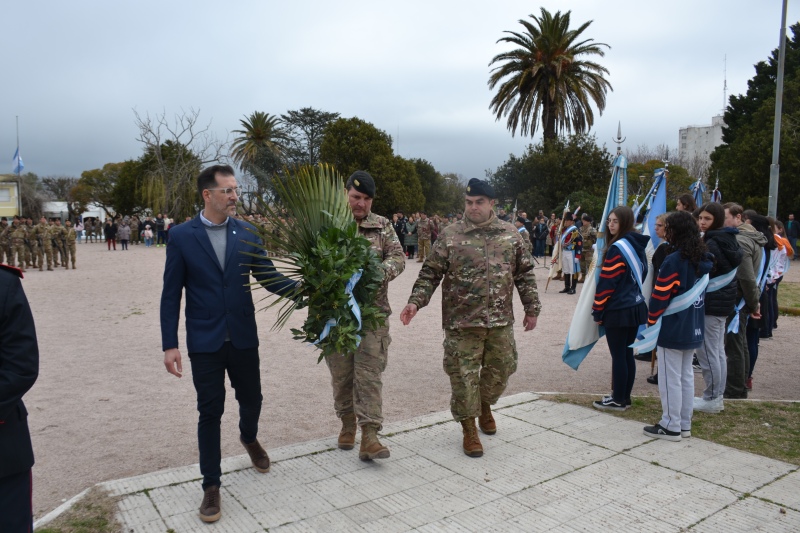 El acto tuvo lugar en el monumento al Libertador y contó con la presencia del secretario de Gobierno, Mariano Mansilla, en representación del intendente Nebot, junto a autoridades municipales, representantes de las fuerzas armadas y de seguridad, concejales, instituciones educativas y vecinos en general.