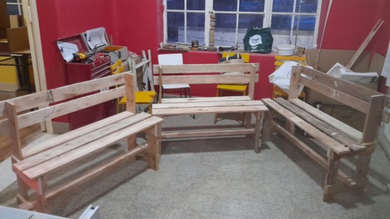 “Es una chica que trabaja y estudia, que trabajó todo el verano en Monte Hermoso para tener ahorros para bancar el año de estudio, y perdió todo. Con madera reciclada le hice la mesa y le reacondicioné unas sillas que pudo rescatar”, contó.