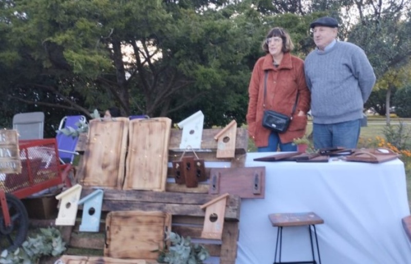 “Luego fuimos a otras Ferias en Pigüé , siempre orgullos que se conozca nuestro trabajo, en el que ponemos todo y siempre buscamos combinar la madera con otros materiales, como hierro, rexina epoxi, mosaiquismo, vitrofusión”, contó.