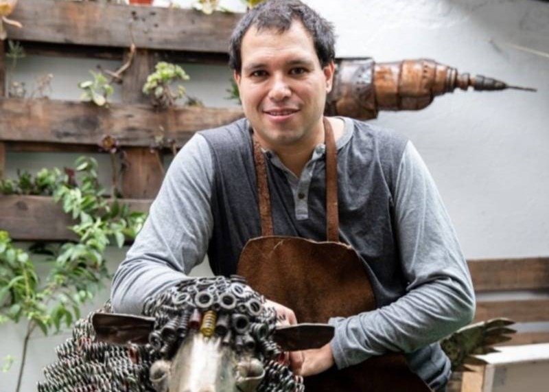 “Fue un gran desafío porque no suelo trabajar con madera, pero me gustó la idea de hacer algo distinto y sustentable”, contó el artista. La estructura interna es de hierro y el proyecto ya demandó unos 500 pallets reciclados, utilizados en tres secciones: cabeza y lomo, patas y panza, y una parte central que las une.