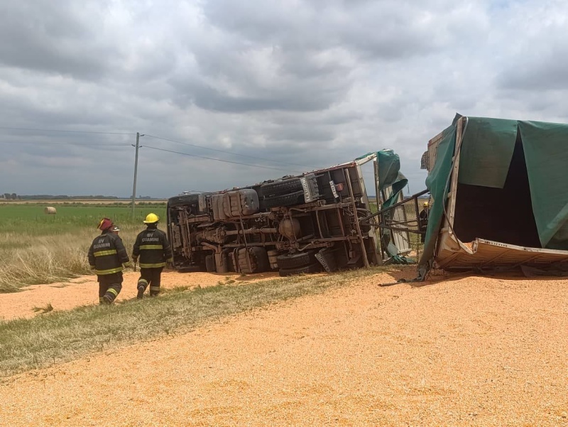 Ayer sábado, cerca del mediodía, se produjo el vuelco de un camión con acoplado que transportaba cereal, lo que provocó el derrame de la carga sobre la calzada. El hecho ocurrió en la Ruta Nacional 33, a la altura del kilómetro 216.