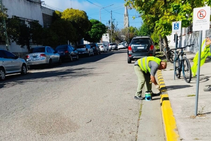 De cara al inicio del ciclo lectivo, el área de Inspección Municipal avanza con tareas de reacondicionamiento y renovación de la señalización en espacios destinados al transporte escolar y a personas con discapacidad en distintos establecimientos educativos del distrito.