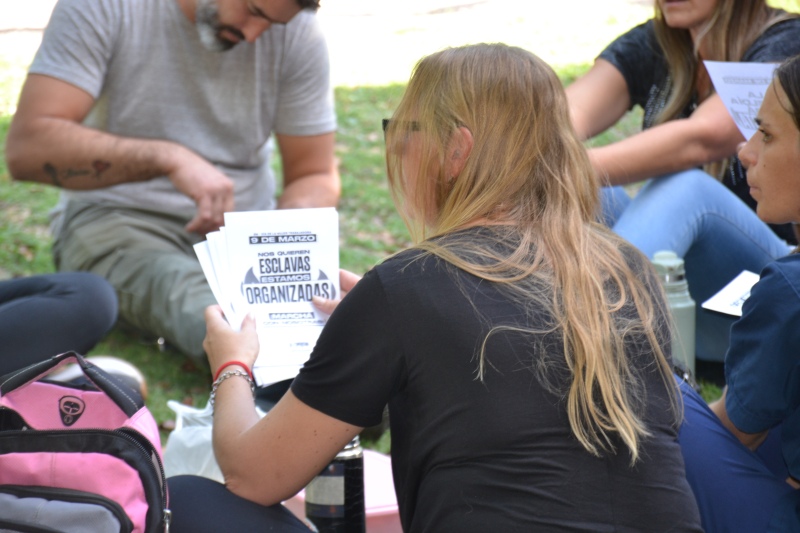 La actividad tuvo lugar en Plaza Sarmiento, junto al banco rojo, y fue organizada por La Cámpora – Frente de Mujeres e Igualdad de Géneros, bajo las consignas “La rebeldía será feminista” y “El ajuste no se aguanta más”.