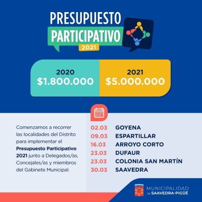 LA CAIDA DE HOJAS COMPLICA AL BARRIO JARDÍN Los vecinos de calle Los Tilos, en el barrio Jardín solicitaron mayor frecuencia en el barrido de... SABINA GALLICCHIO SERÁ LA NUEVA DIRECTORA DE DEPORTES El Intendente Municipal Gustavo Notararigo se reunió esta mañana con la profesora Sabina... Comenzó la temporada de poda: ¿Qué hay que saber sobre arbolado público? Hace unos días el municipio comenzó con los trabajos de poda propios de la temporada y con el... Diego Sarlinga se recibió de Ingeniero en electrónica con el mejor promedio en la UTN La Facultad Regional Bahía Blanca de la Universidad Nacional Tecnológica (UTN) tuvo su 63ª... GANADORES DEL SORTEO INICIAL DEL DEPOR El sábado se realizó por lotería provincial nocturna el primer sorteo del bono contribución... UNIÓN PIGÜÉ SORTEÓ LA MOTO DE SU BONO CONTRIBUCIÓN El sábado sorteó por lotería provincial nocturna, el bono contribución del club Unión... VECINOS DEL BARRIO UNIÓN PIDEN POR LA OBRA DE GAS Se trata de un grupo de vecinos que habitan en el sector con ingreso por calle Cacique... LOS SERENATEROS REPARTIERON CASI 100 MIL PESOS ENTRE CUATRO INSTITUCIONES Y las Serenatas Solidarias siguen sonando para alegrar a la gente, pero sobre todo, para ayudar a... NUEVO ENCUENTRO VIRTUAL DE LA MESA INTESECTORIAL DE PREVENCIÓN Y ABORDAJE DE LAS VIOLENCIAS DE GÉNERO En el día de hoy tuvo lugar un nuevo encuentro del año de la Mesa Intersectorial de prevención... LA COOPERATIVA ELÉCTRICA POSTERGA LA ASAMBLEA La Cooperativa Eléctrica de Pigüé informa que la ASAMBLEA GENERAL ORDINARIA, prevista para el... Se realizó en Berisso el rastrillaje 39 para encontrar el cuerpo de Miguel Bru El martes 20 de abril se hizo un nuevo rastrillaje en busca del cuerpo de Miguel Bru en dos... ATRASOS EN EL BACHEO EN PIGÜÉ La Secretaria de Desarrollo Urbano y Territorial Municipal informa que por una demora en la... HABILITARON LA SALIDA DEL PARQUE POR EL SAINT COME Quedaron finalizados los trabajos de delimitación de la circulación, con mojones en el parque... COMUNICADO DE REFLEJOS RADIO REFLEJOS RADIO COMUNICA QUE POR RAZONES DE FUERZA MAYOR ESTE LUNES 19 DE ABRIL NO EMITIRÁ AL AIRE... Hoy no se realizará la recolección de residuos nocturna Debido a que los municipales se encuentran en paro por tiempo indeterminado desde hoy en horas del... Sebastián Otondo:"La Alianza se adaptó a la pandemia en todos sus servicios" El pasado 13 de abril, la Cooperativa "La Alianza" de Pigüé festejo sus 108 años. En una... Plenaria del Consejo de Articulación de Políticas de Género y Diversidad Sexual Cerró la Ministra Estela Díaz celebrando estos encuentros que posibilitan ir construyendo el... COOPERATIVA DE PROVISIÓN DE SERVICIO ELÉCTRICO Y OTROS SERVICIOS PÚBLICOS DE PIGÜÉ, LIMITADA CONVOCATORIA ASAMBLEA GENERAL ORDINARIA PEÑA DALE BO CONVOCATORIA Compañero Asociado: En cumplimiento de lo preceptuado por el artículo 13... CORTE EN SERVICIOS DE FIBRA ÓPTICA Durante la madrugada del jueves 15 de abril, desde la 1 a las 5 am se estarán realizando tareas... 1 ... 64656667686970